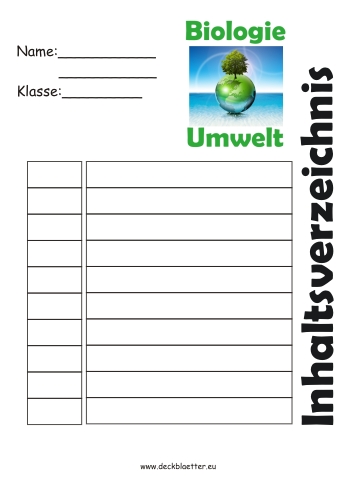 Biologie Umwelt Inhaltsverzeichnis Vorlage für das Schulfach Biologie - Deckblatt Biologie Umwelt Inhaltsverzeichnis zum ausdrucken.