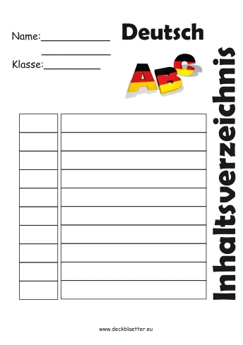 Inhaltsverzeichnis Deutsch Vorlage für das Schulfach Deutsch - Deckblatt Inhaltsverzeichnis Deutsch zum ausdrucken.