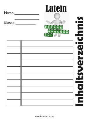 Deckblätter Inhaltsverzeichnisse für Schnellhefter und Ordner. Ein Inhaltsverzeichnis für den Schnellhefter in Latein sorgt für mehr Übersicht. Passend dazu sollte das Deckblatt für den Latein Ordner sein.