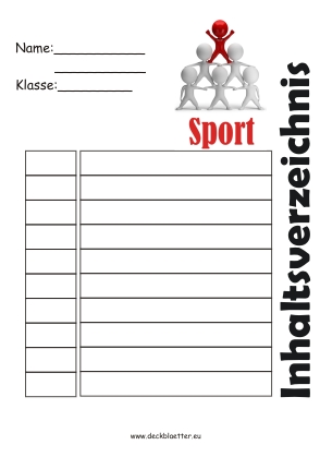 Inhaltsverzeichnis Sport Vorlage für das Schulfach Sport - Deckblatt Inhaltsverzeichnis Sport zum ausdrucken.