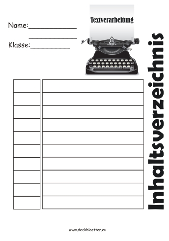 Inhaltsverzeichnis Textverarbeitung Vorlage für das Schulfach Textverarbeitung - Deckblatt Inhaltsverzeichnis Textverarbeitung zum ausdrucken.